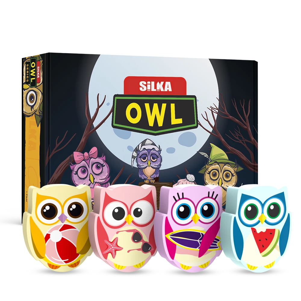 Baglyos radír műanyag dobozban. Anyaga: TPR (hőre lágyuló gumi), PVC mentes, forgácsmentes. Élelmiszer minőségű festékanyagokkal gyártva. Ideális grafit ceruzavonalak radírozásához. Radír mérete: 39*30,5*9 mm. 36 db/display