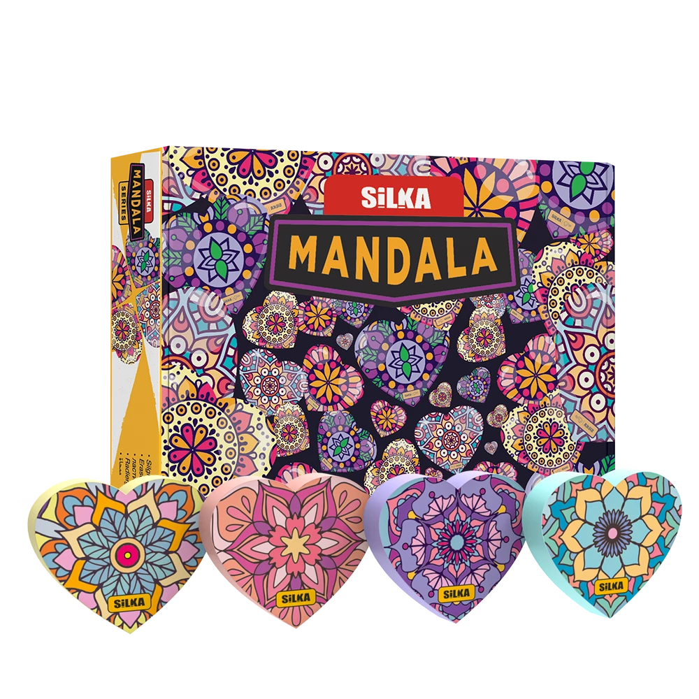Mandalás, szív alakú radír műanyag dobozban. Anyaga: TPR (hőre lágyuló gumi), PVC mentes, forgácsmentes. Élelmiszer minőségű festékanyagokkal gyártva. Ideális grafit ceruzavonalak radírozásához. Radír mérete: 40*35*9 mm. 36 db/display