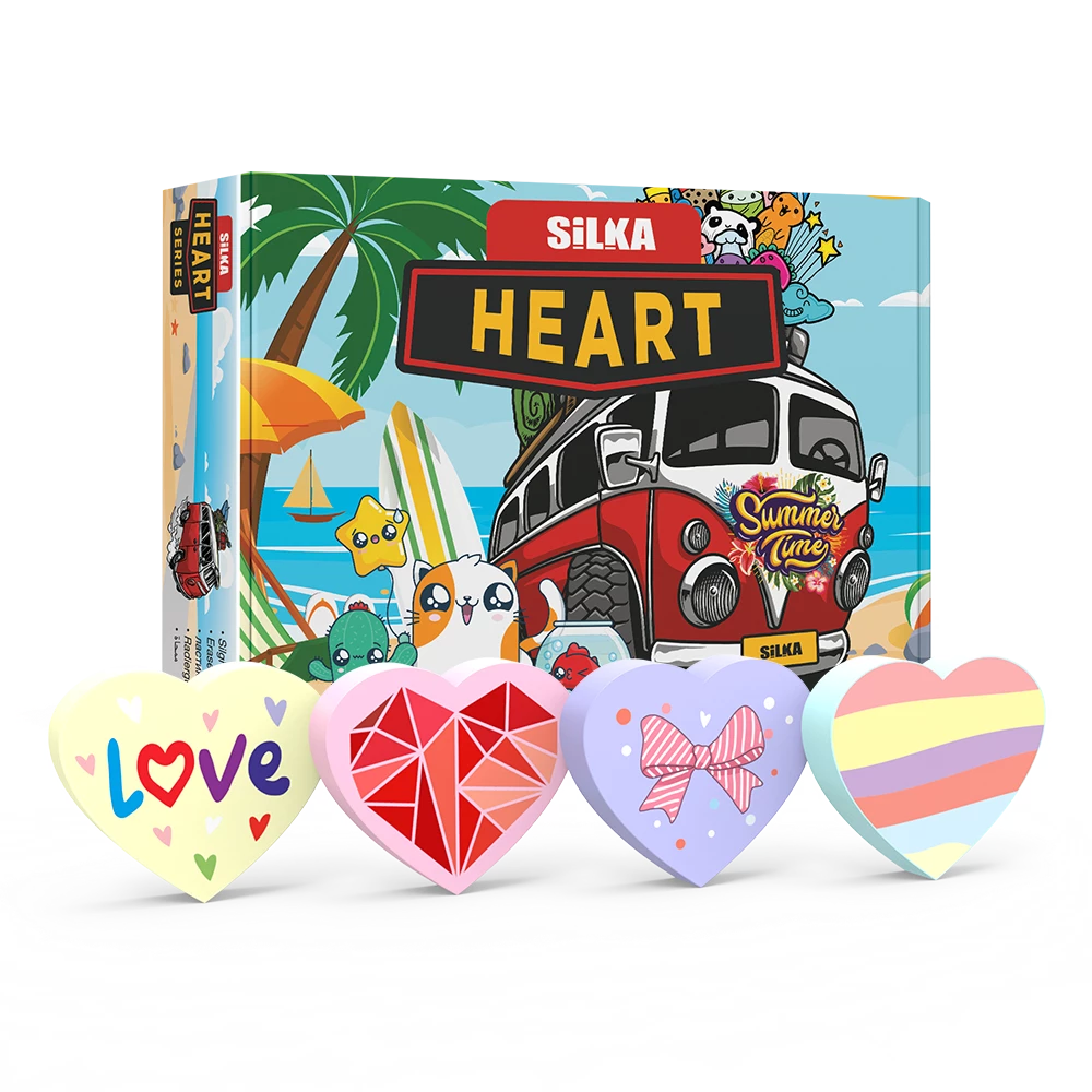 Szív alakú radír műanyag dobozban. Anyaga: TPR (hőre lágyuló gumi), PVC mentes, forgácsmentes. Élelmiszer minőségű festékanyagokkal gyártva. Ideális grafit ceruzavonalak radírozásához. Radír mérete: 40*35*9 mm. 36 db/display